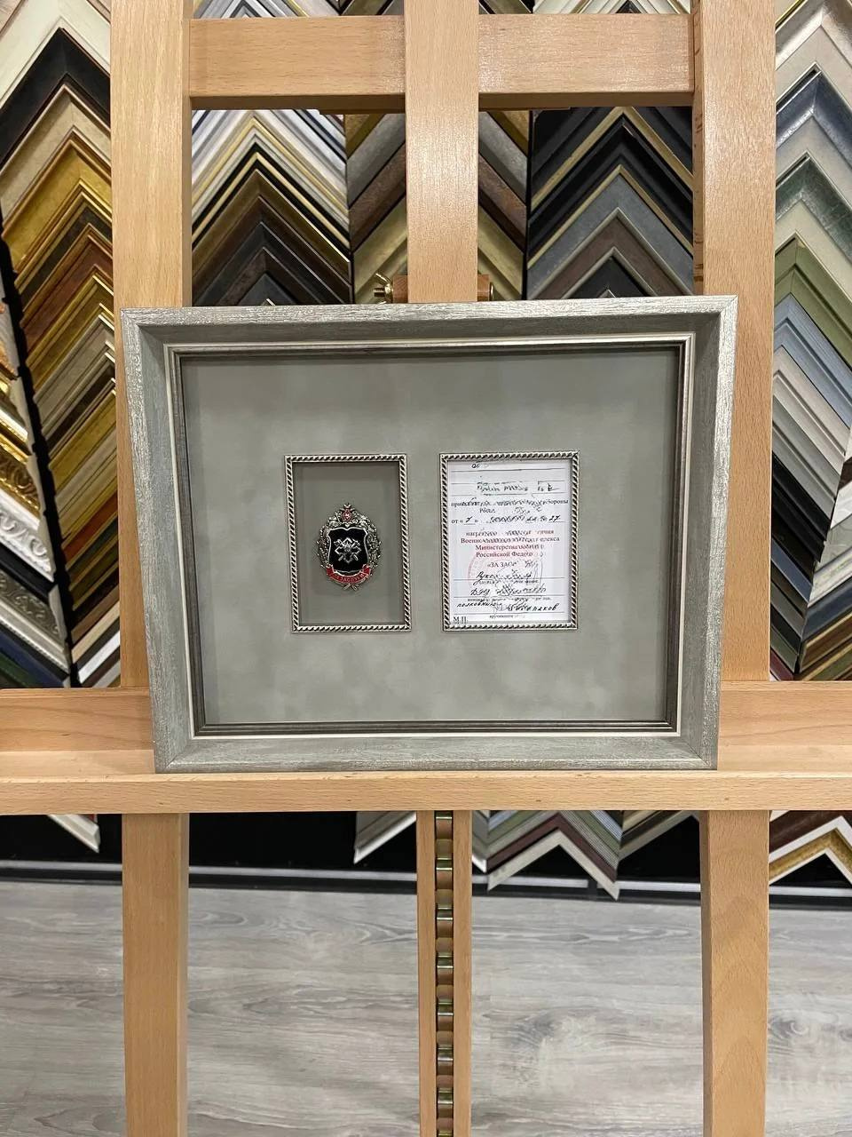 Оформление наград — это важный этап, который позволяет сохранить память о достижениях и торжественных моментах. В нашей Арт-мастерской «Багетъ» мы предлагаем профессиональное оформление наград с использованием качественного багета и стекла. Для оформления награды и наградной книжки обычно используется стильный кант, который гармонично сочетается с выбранным багетом. Награда размещается слева, а наградная книжка — справа, создавая гармоничный ансамбль.